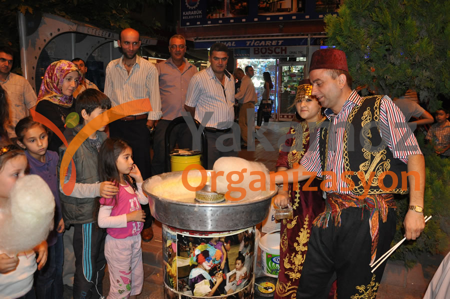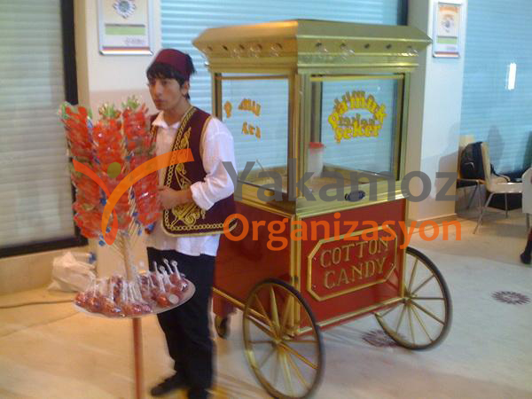 Kostümlü kişiler tarafından ücretsiz ikram edilir. Bir diğer adı ile Nostaljik Yiyecekler. Pamuk şekeri arabası, Patlamış mısır Pop corn, Kestane, Nostalji şekerler, Boza, Şıra, Şerbetçi, Macuncu, Osmanlı macunu, Sahlep, Şerbetçiler, Osmanlı şerbetçisi, Kahveci güzeli, Maraş dondurmacısı Ürünler özel arabalarında ve güğümlerde organizasyonlarda sınırsız dağıtım.